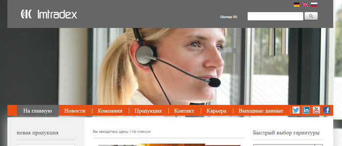 Компания Imtradex Hor-/Sprechsysteme GmbH располагается в Драйайхе, недалеко от Франкфурта на Майне. На сегодняшний день компания Imtradex стала одним из ведущих производителей гарнитур в Европе. Imtradex разрабатывает, производит и распространяет профессиональные гарнитуры, как для общего пользования, так и для специальных требований. Для продукции компании характерны инновационные технологии производства, высокое качество, надёжность и гибкость в удовлетворении конкретных потребностей пользователей.