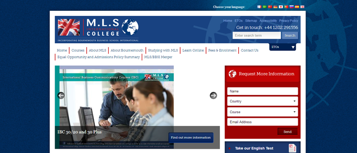 Международный колледж MLS занимается подготовкой специалистов в области управления и иностранных языков. Колледж ведет программы по обучению английскому языку, специализированные языковые курсы, программы подготовки специалистов в сфере управления и тренинги для специалистов в области управления, а также организует подготовительные курсы для поступления в университет для иностранцев.Колледж находится в Великобритании в г. Борнмут.