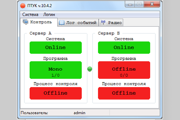 В составе системы вещания поставляется коммутатор каналов, который служит для переключения аудиовыхода главного сервера на вход радиопередатчиков. Коммутатор каналов способен управлять тангентой радиопередатчика, а помехоустойчивость обеспечивается организацией симметричной линии связи между радиопередатчиком и коммутатором.